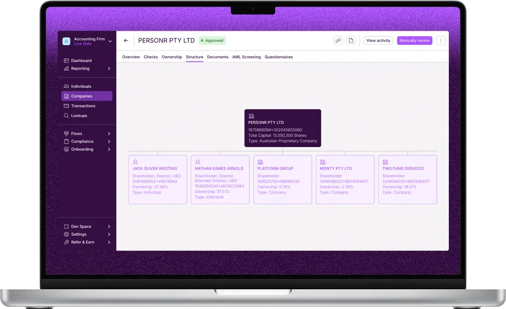 Maintain a living record of verified company structures for AUSTRAC reporting.